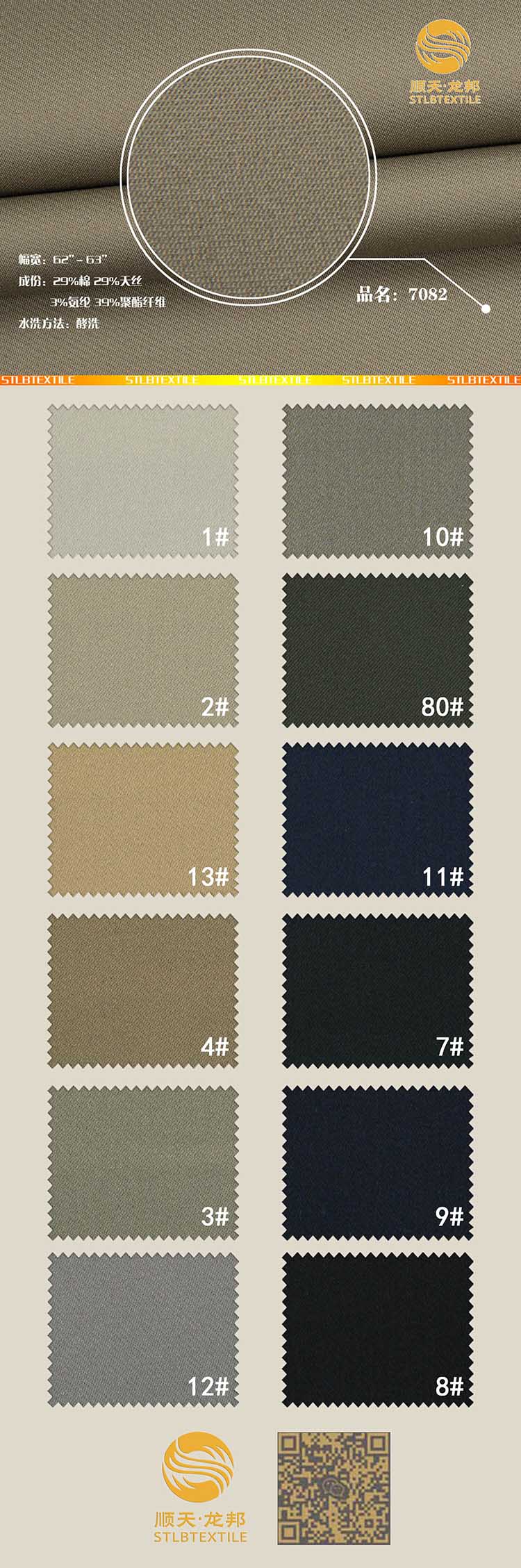 Composition:29% cotton,29% tencel,39% polyester,3% spandex