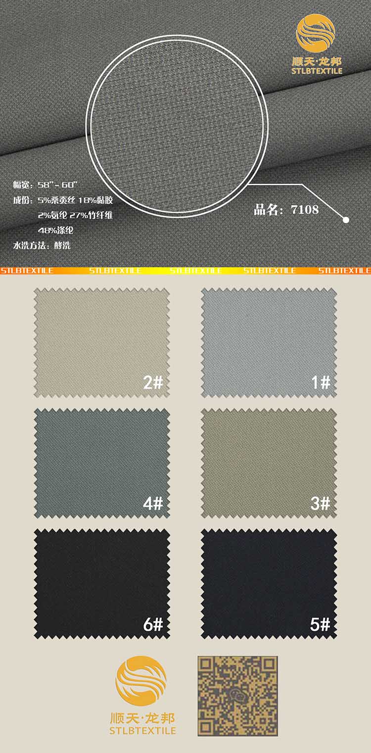 Composition:27% bamboo,48% polyester,2% spandex,18% viscose,5% mulberry silk
